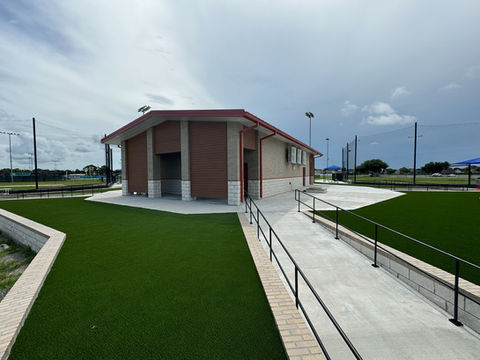 The $2.1 million project at Bayou Country Sports Park, commissioned by the Terrebonne Parish Consolidated Government, involved the construction of a new concession stand, restroom, and umpire locker room building. Additional enhancements included new pavement, 1,254 linear feet of storm drainage with new catch basins, improvements to playing fields, backstops, and concrete walls, as well as new dugout benches, low-rise bleachers, and a public address system. The project also featured artificial turf in gathering areas and the installation of sun canopies and structures.